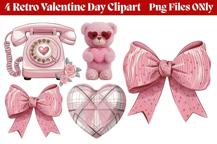Retro Valentine Day Clipart PNG example image 1