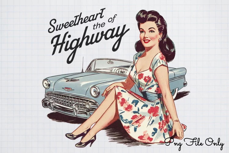 Sweetheart of the highway PNG,Retro PinUp Sublimation PNG example image 1