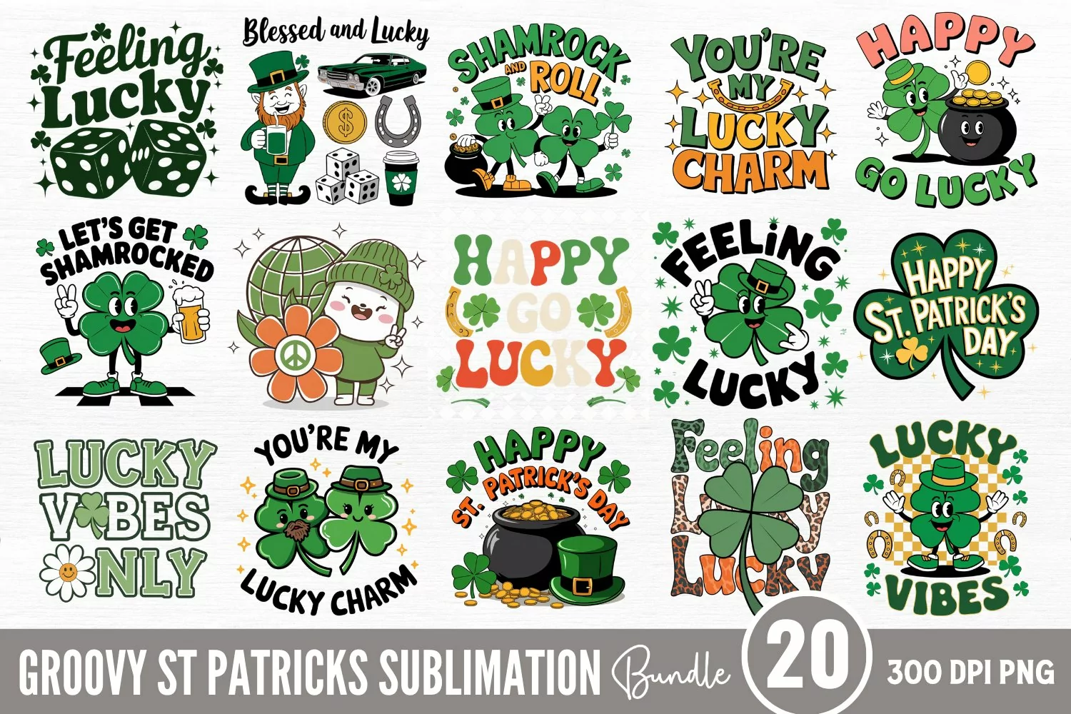 Groovy ST Patricks Sublimation Bundle PNG