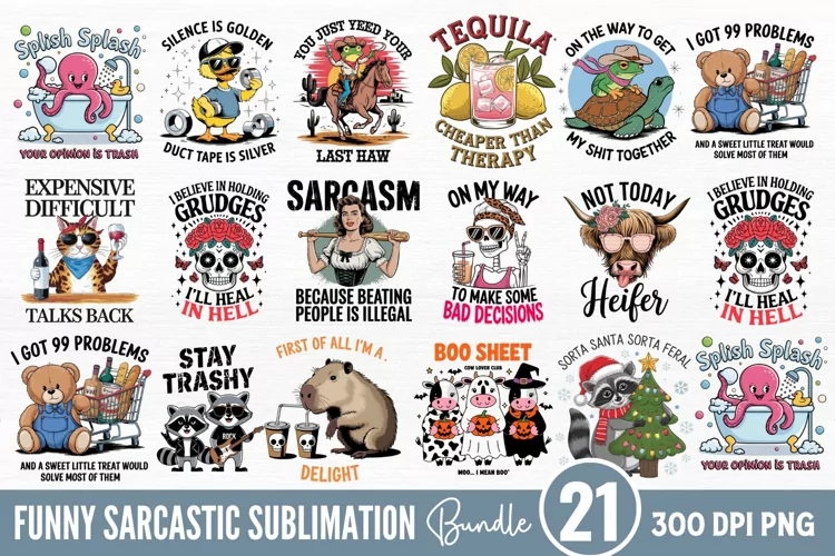 Funny Sarcastic Sublimation Quotes Bundle PNG example image 1