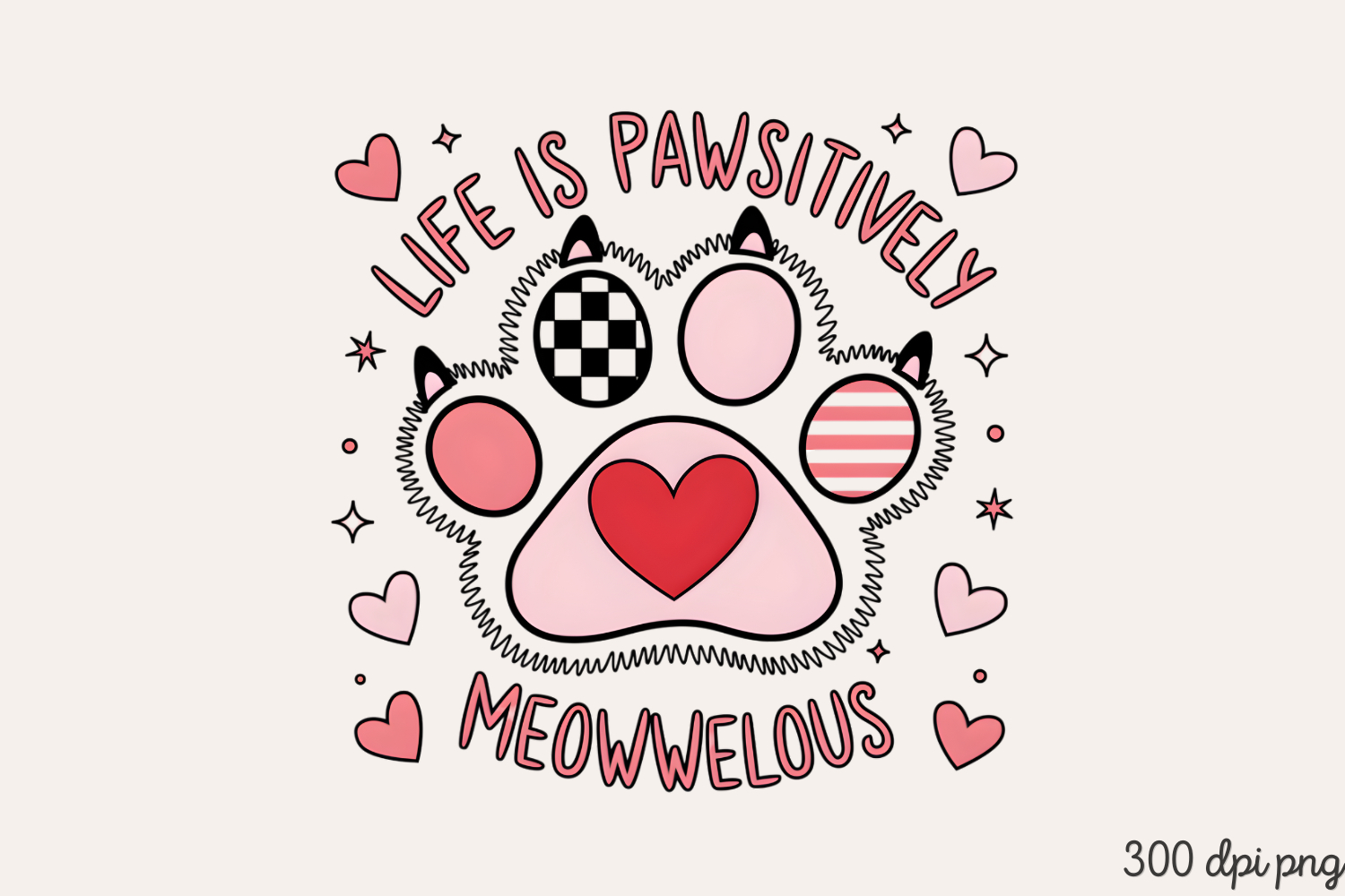 LIFE IS PAWSITIVELY MEOWELOUS PNG, Funny Cats Sublimation Qu