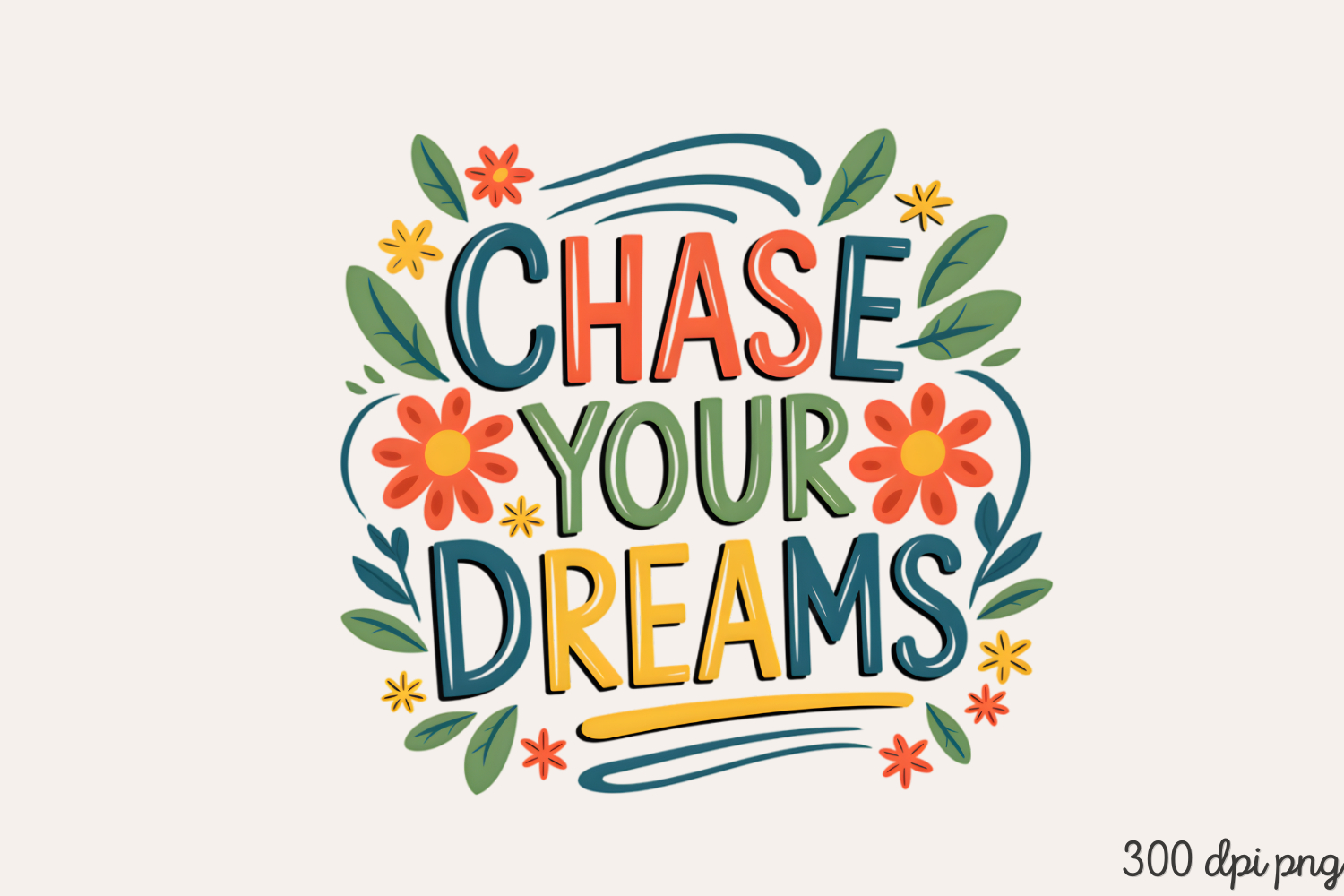 CHASE YOUR DREAMS PNG, Inspired Florals Sublimation PNG example image 1