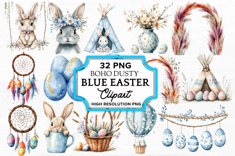 Similar Design Products to Boho Dusty Blue Easter Clipart Bundle PNG