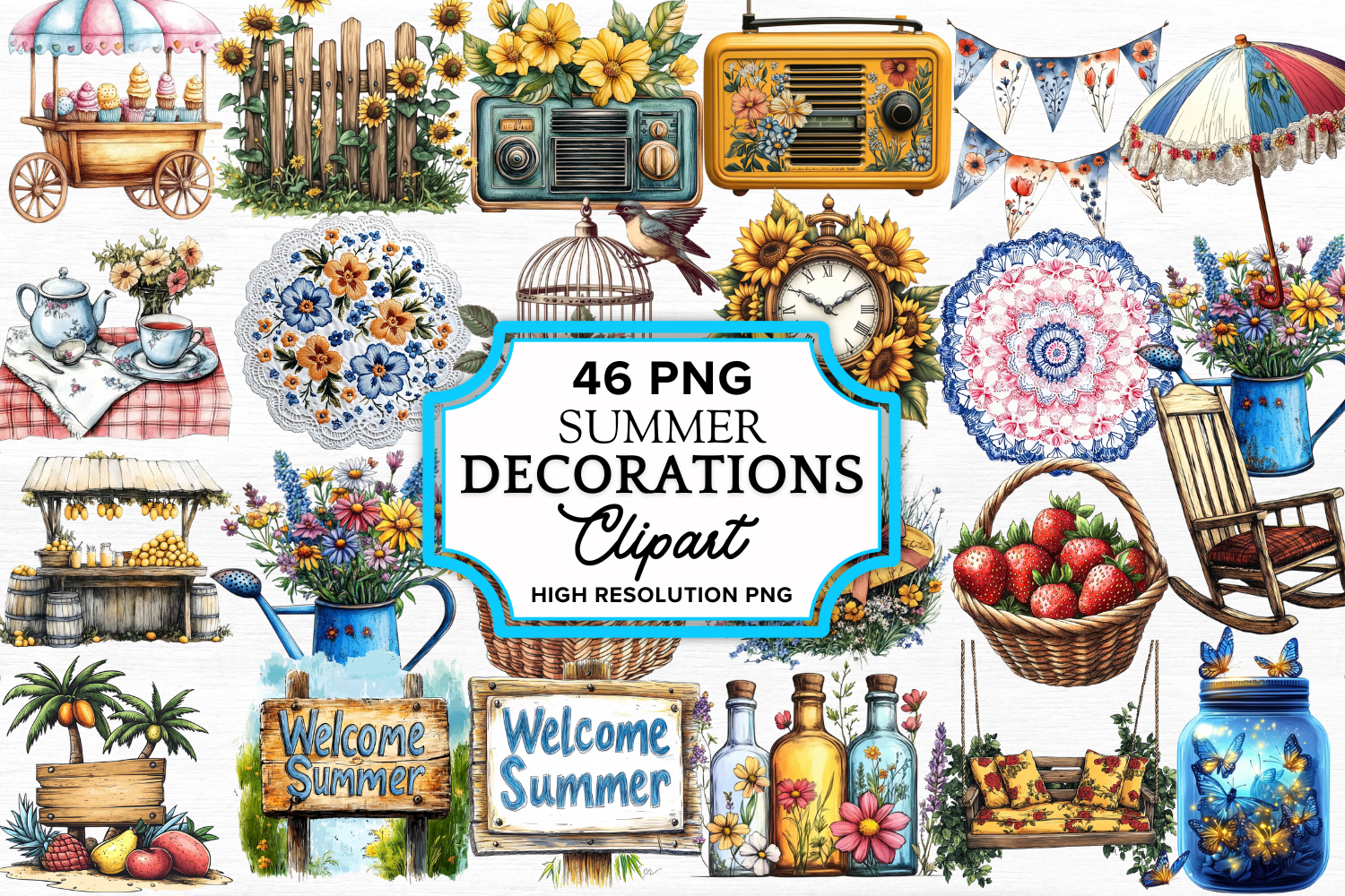 Summer Decorations Clipart Bundle PNG