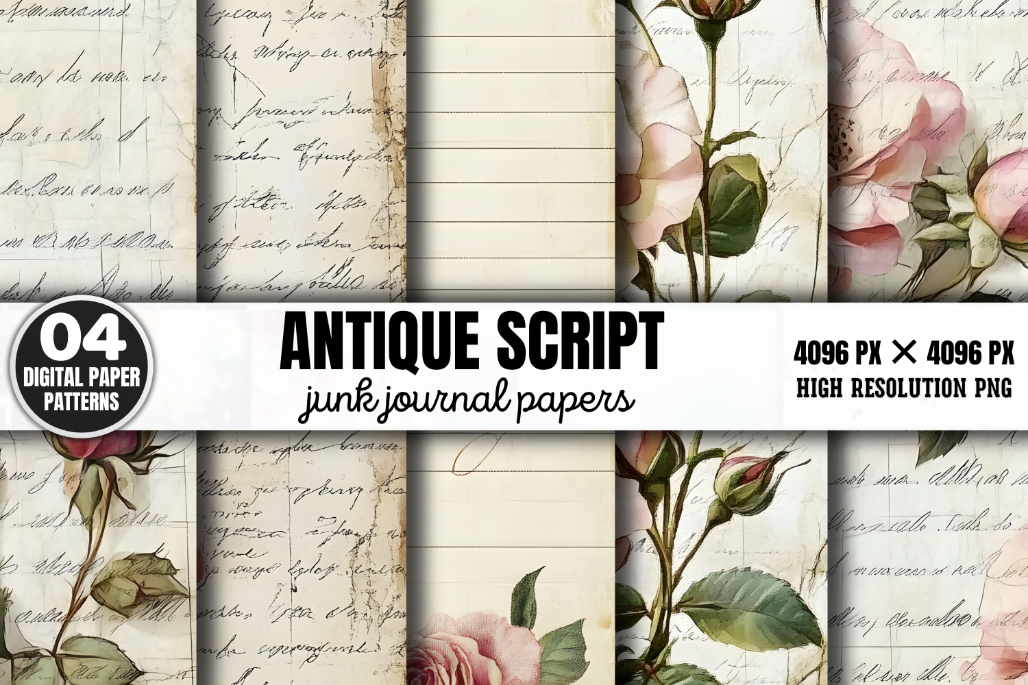 Similar Design Products to Antique Script Junk Journal Papers PNG