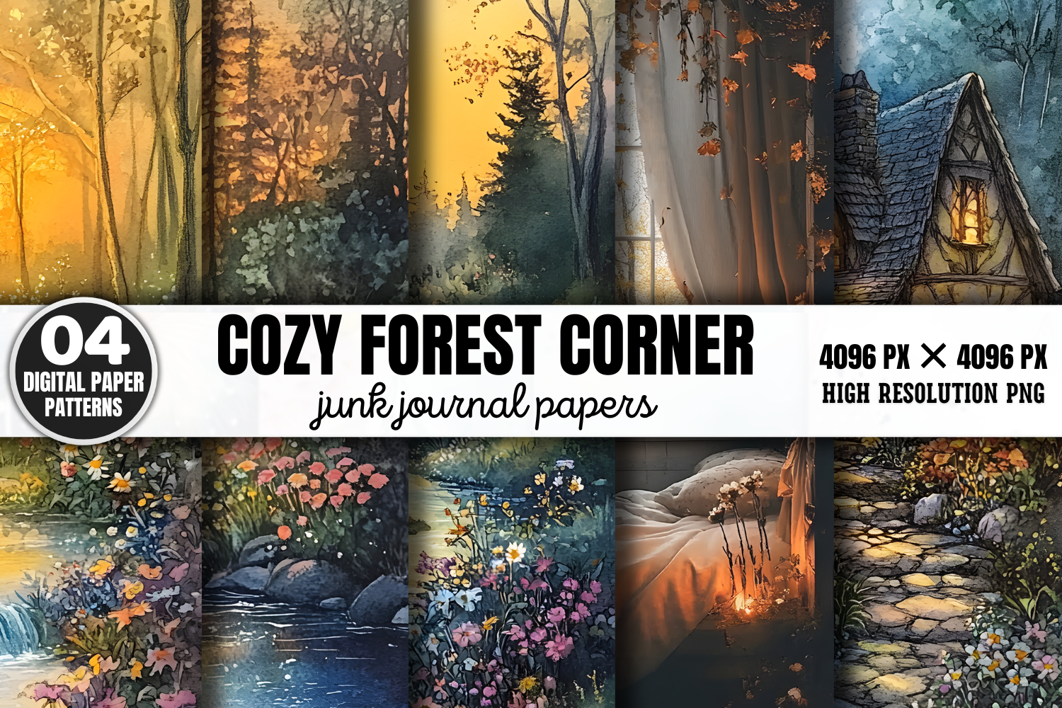 Cozy Forest Corner Junk Journal Paper, Cozy Forest Corner Junk Journal Kit, Enchanted Forest Scenes Pages Ephemera, Relaxing Collage Sheet, Scrapbook Paper, Cozy Nook Background, Cozy Forest Digital Paper, Forest Nook Ephemera, Woodland Junk Journal Pages, Rustic Nature Scenes, 300 Dpi Cozy Paper, Printable Forest Nook Art, Mixed Media Forest Designs, Cozy Planner Inserts, Forest Backgrounds,