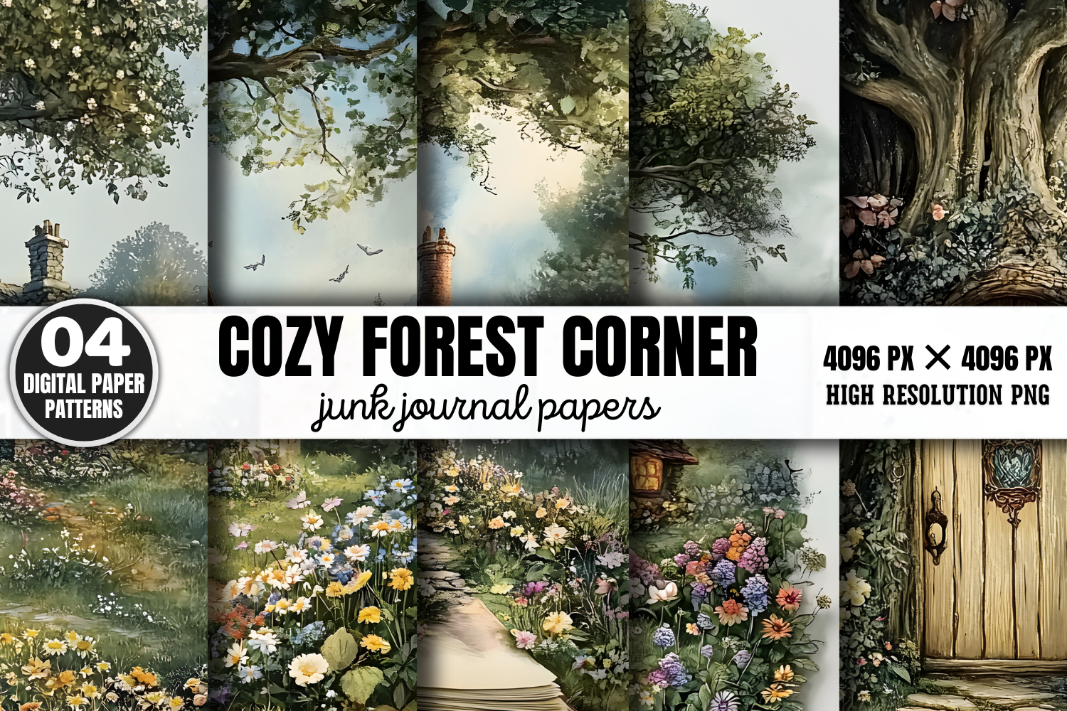 Cozy Forest Corner Junk Journal Paper, Cozy Forest Corner Junk Journal Kit, Enchanted Forest Scenes Pages Ephemera, Relaxing Collage Sheet, Scrapbook Paper, Cozy Nook Background, Cozy Forest Digital Paper, Forest Nook Ephemera, Woodland Junk Journal Pages, Rustic Nature Scenes, 300 Dpi Cozy Paper, Printable Forest Nook Art, Mixed Media Forest Designs, Cozy Planner Inserts, Forest Backgrounds,