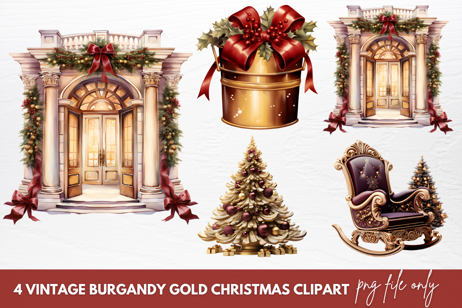 Vintage Burgandy Gold Christmas Clipart Sublimation