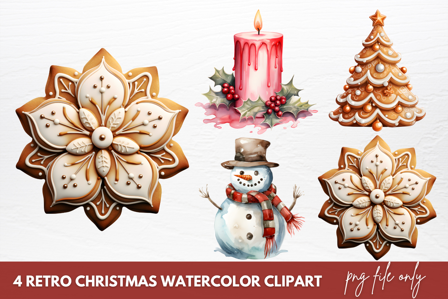 Retro Christmas Watercolor Sublimation Clipart example image 1