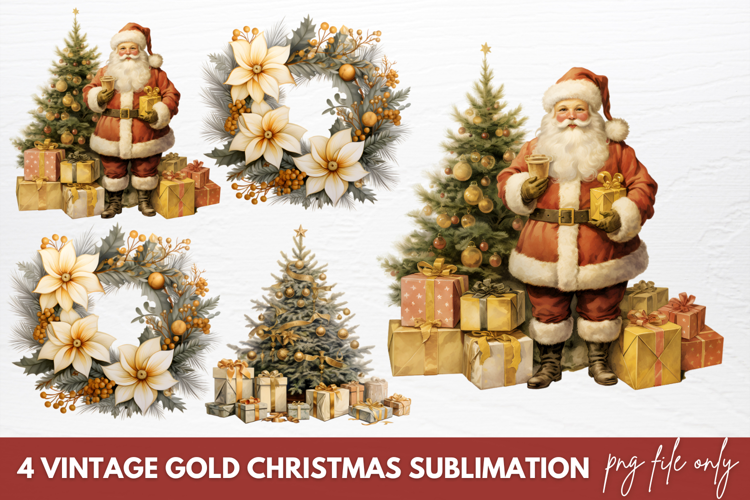 Vintage Gold Christmas Sublimation Clipart example image 1