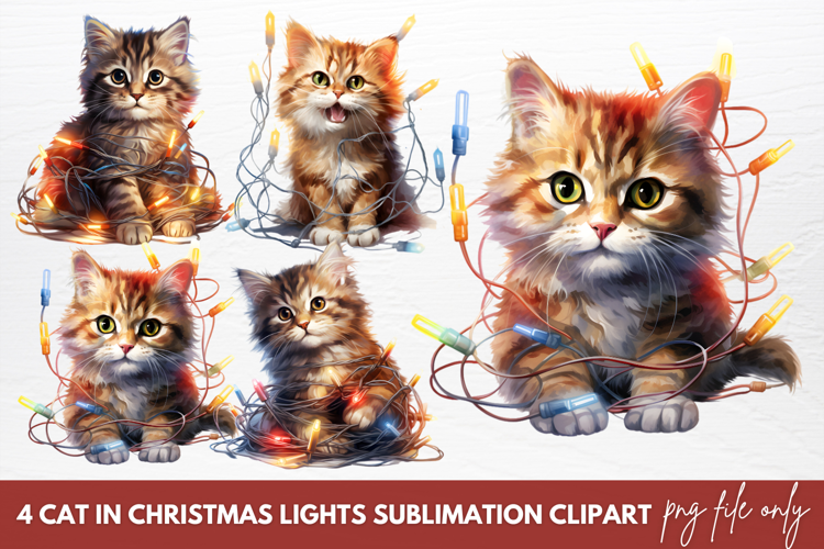 Cat In Christmas Lights Sublimation Clipart example image 1