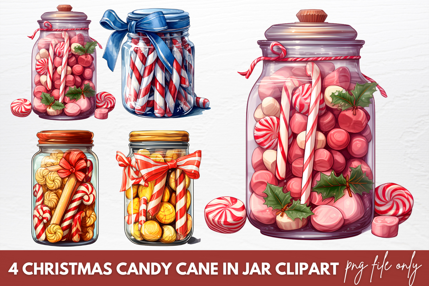 Christmas Candy Cane In Jar Clipart Sublimation example image 1