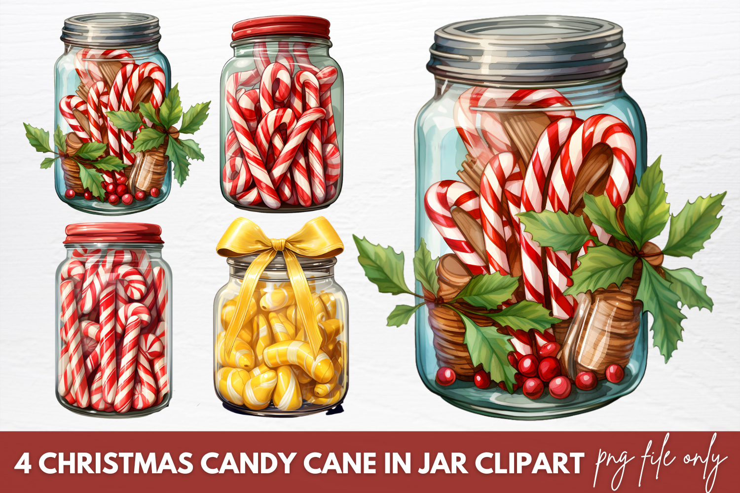 Christmas Candy Cane In Jar Clipart Sublimation example image 1