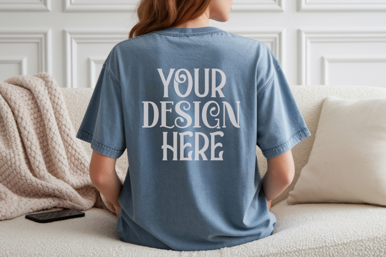 Chambray Comfort Colors C1717 Shirt Mockup, CC 1717 T-shirt