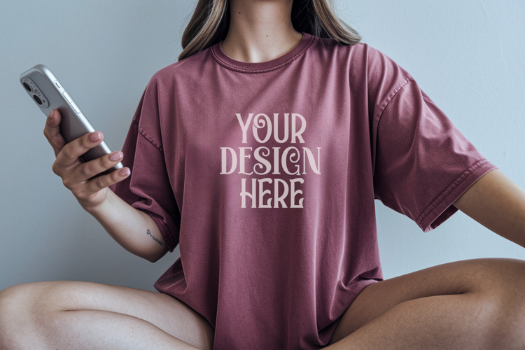 Crimson Comfort Colors 1717 T-shirt Mockups, Real Model
