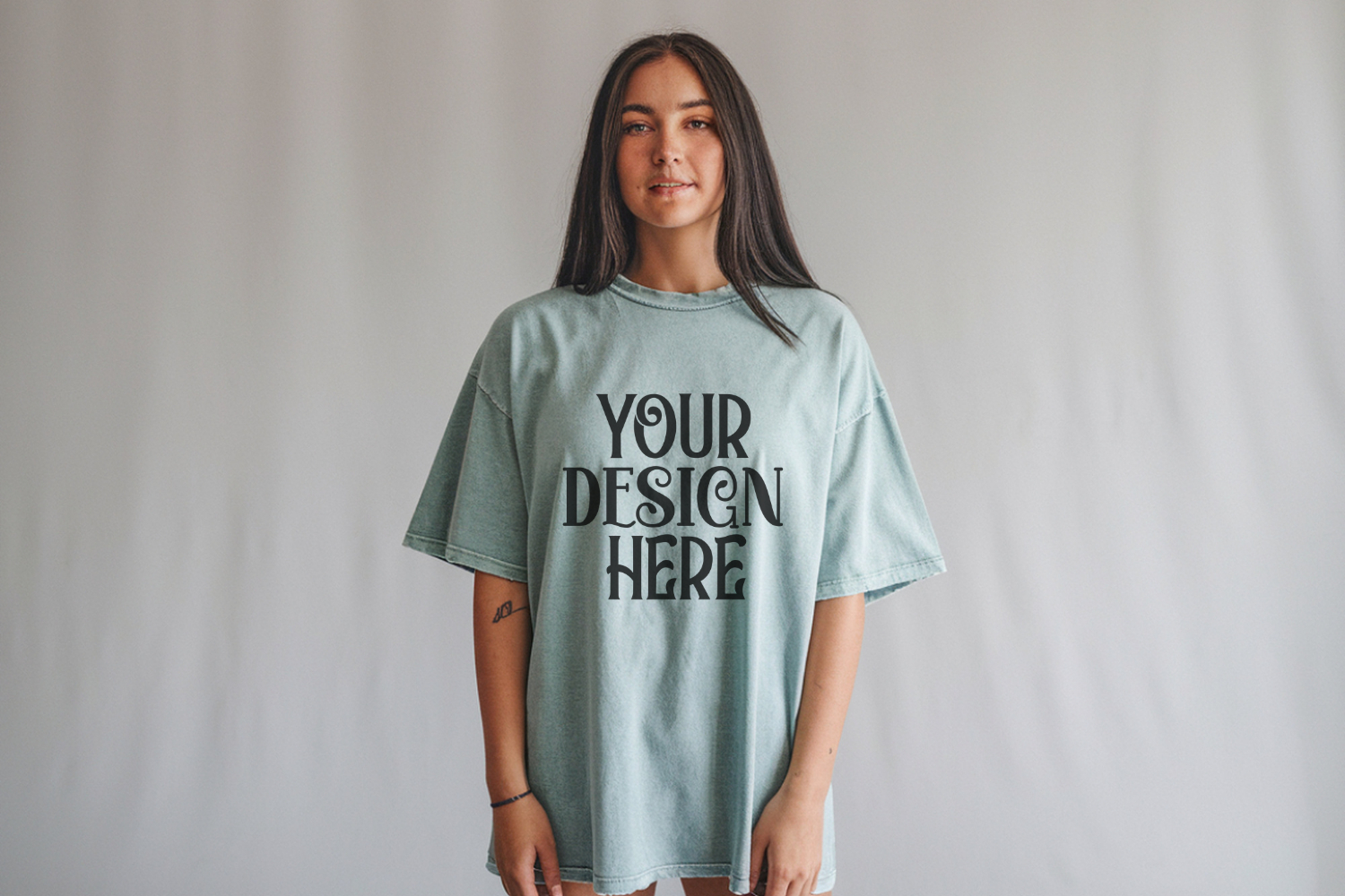 Comfort Colors 1717 Seafoam T-shirt Mockups, Real Model