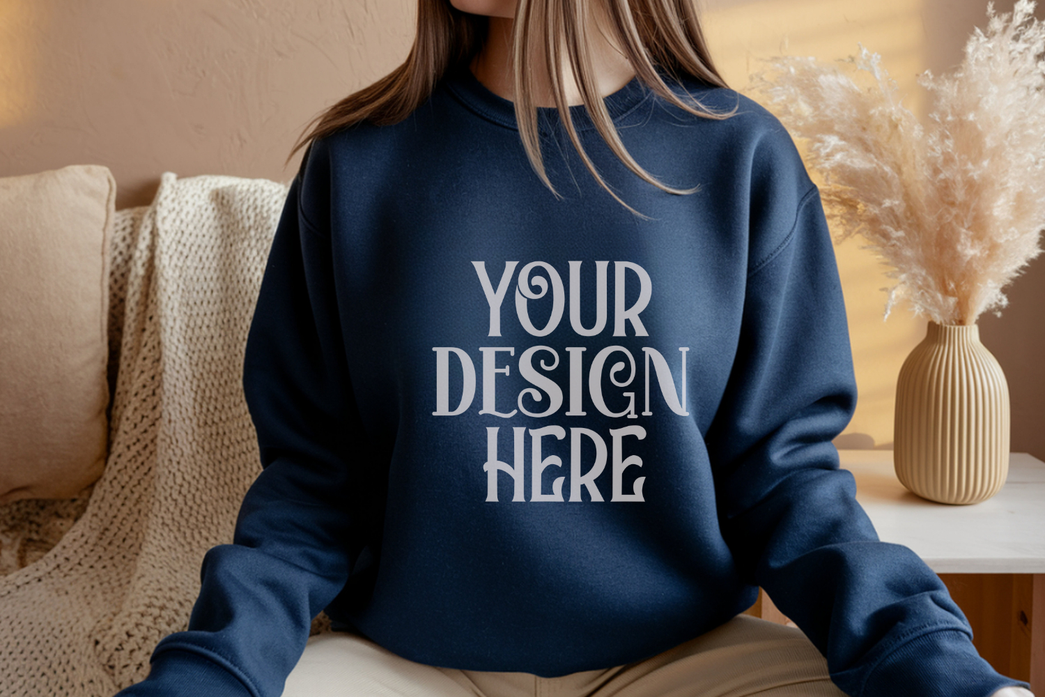 Similar Design Products to Gildan 18000 Navy Crewneck Sweatshirt Mockups,G180