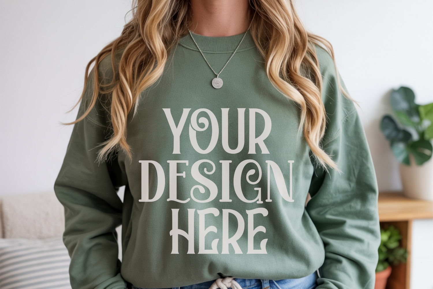 Similar Design Products to Military Green Gildan 18000 Mockup, Sweatshirt Crewneck Mock