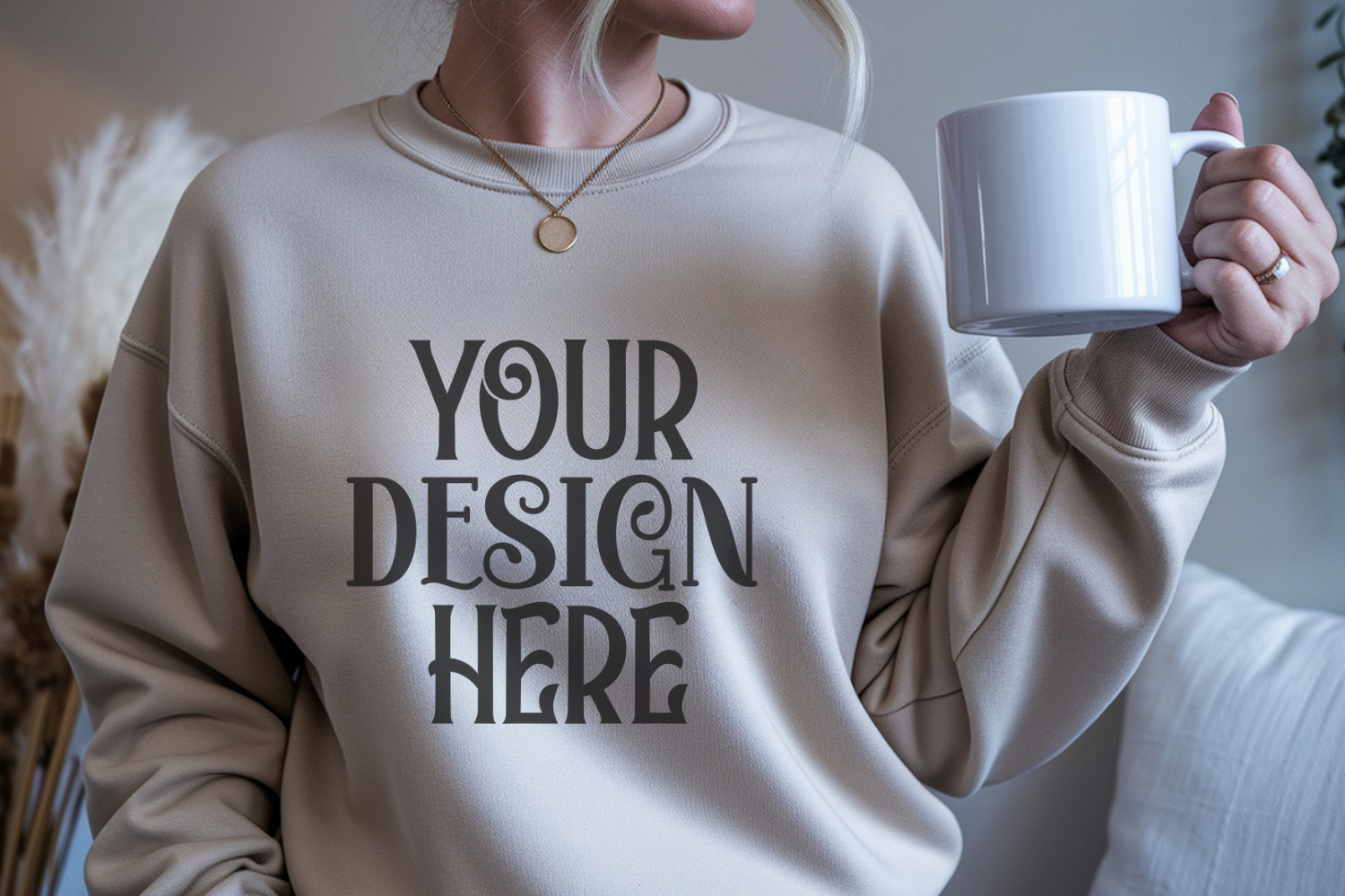 Similar Design Products to Sand Gildan 18000 Mockup, Sweatshirt Crewneck Mockups