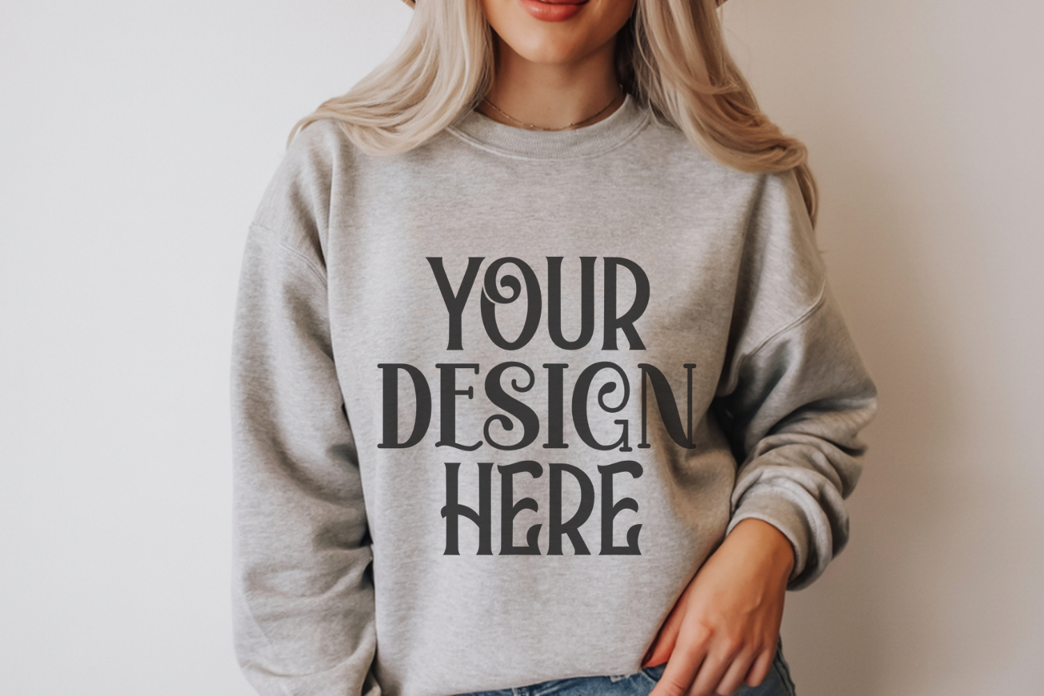 Sport Grey Gildan 18000 Mockup, Sweatshirt Crewneck Mockups