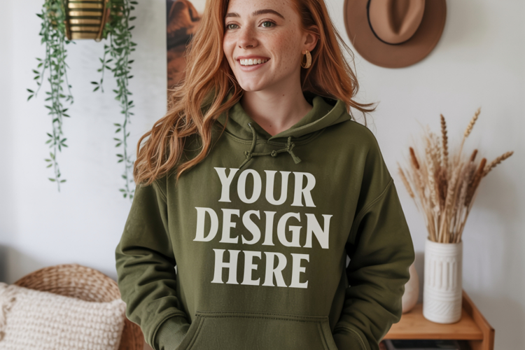 Military Green Gildan 18500 Hoodie Mockup, G18000 Hoodie Mod