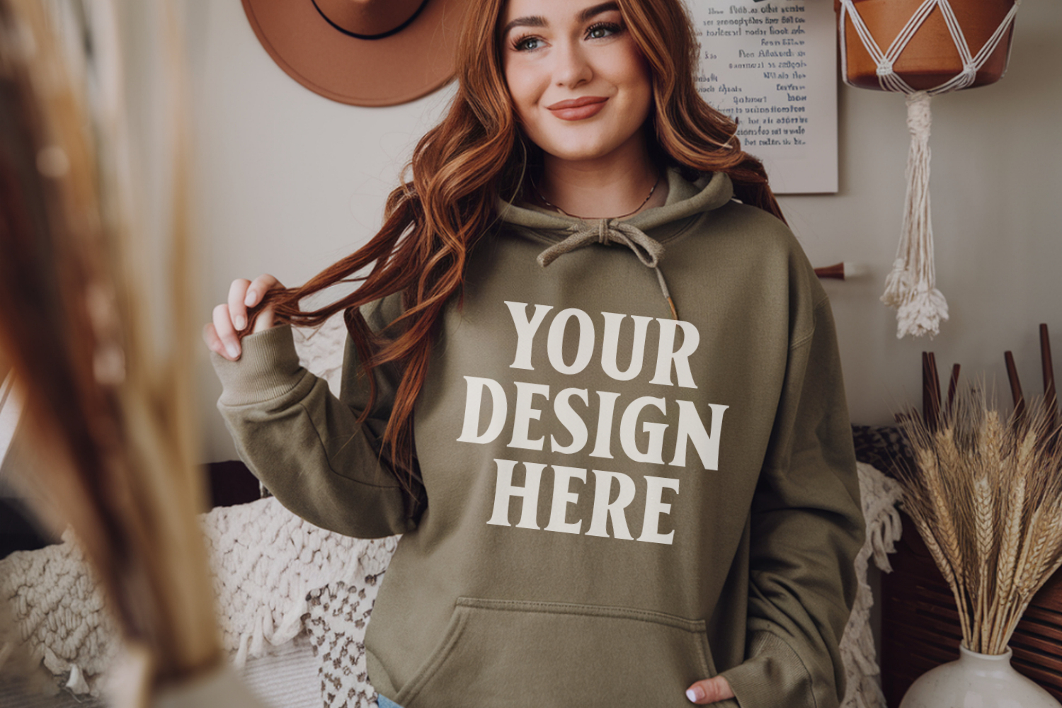 Military Green Gildan 18500 Hoodie Mockup, G18000 Hoodie Mod