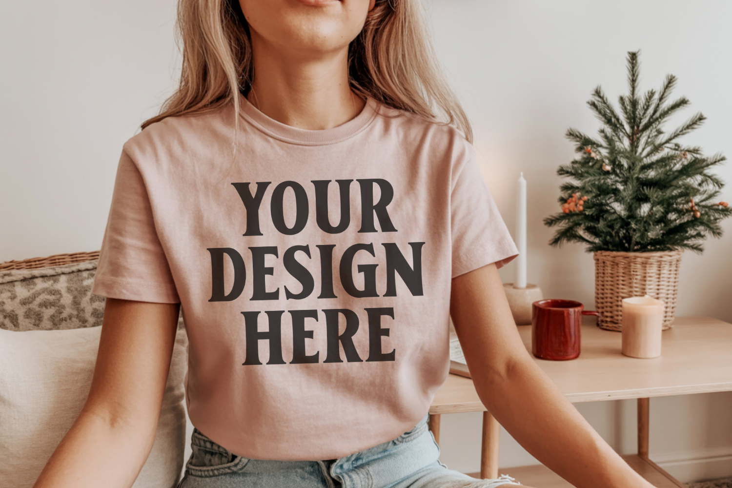 Bella Canvas 3001 Heather Peach Christmas Shirt Mockup, Tran