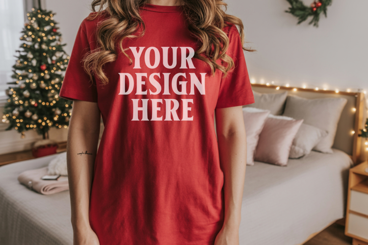 Similar Design Products to Christmas Bella Canvas 3001 Red Shirt Mockup ,Trandy Mockup