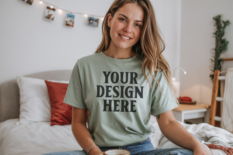 Christmas Bella Canvas 3001 Sage Green Shirt Mockup ,Trandy