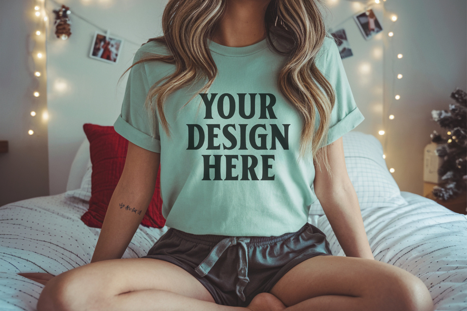 Similar Design Products to Christmas Bella Canvas 3001 Sage Green Shirt Mockup ,Trandy