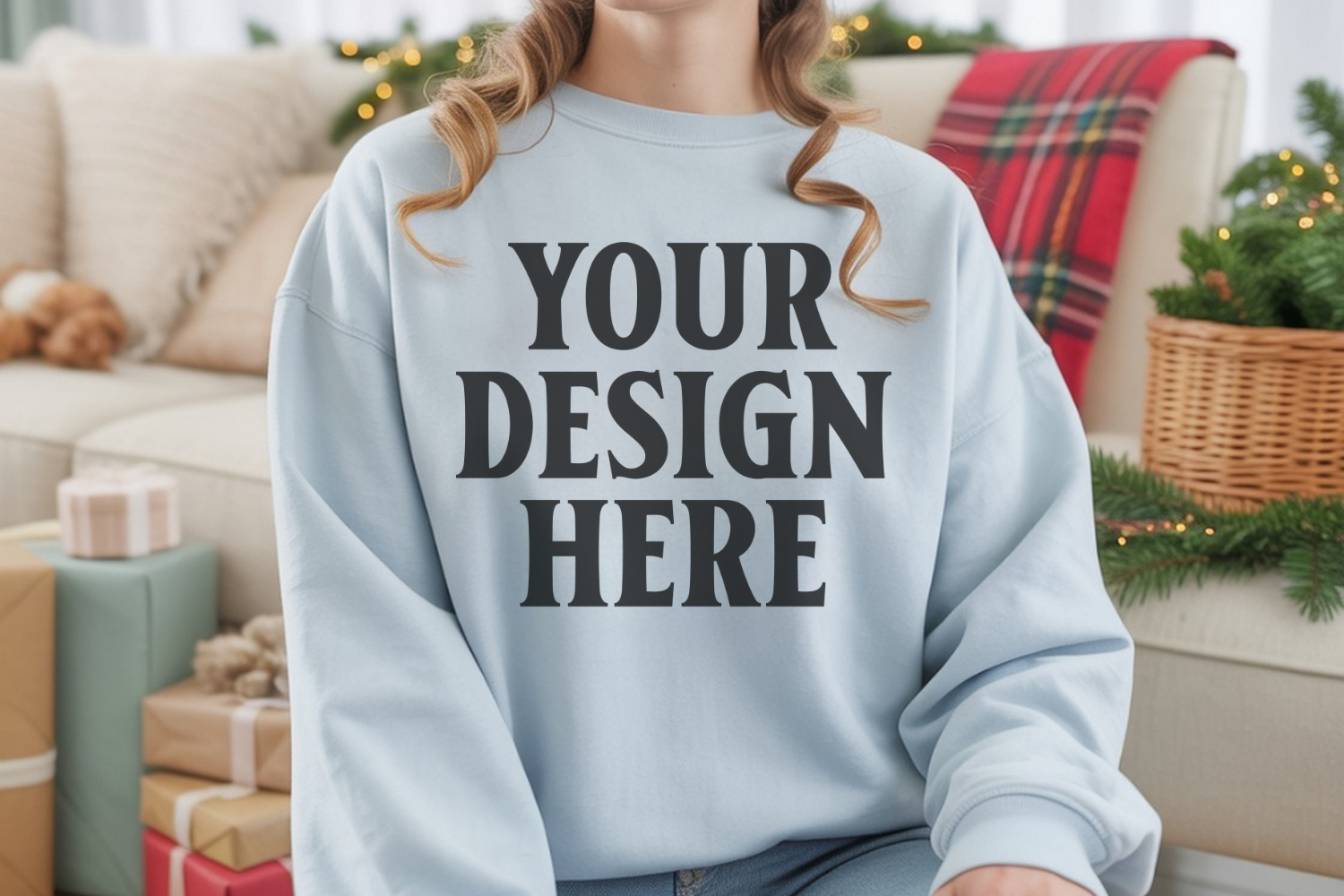 Light Blue Gildan 18000 Crewnwck Sweatshirt Mockup, gildan