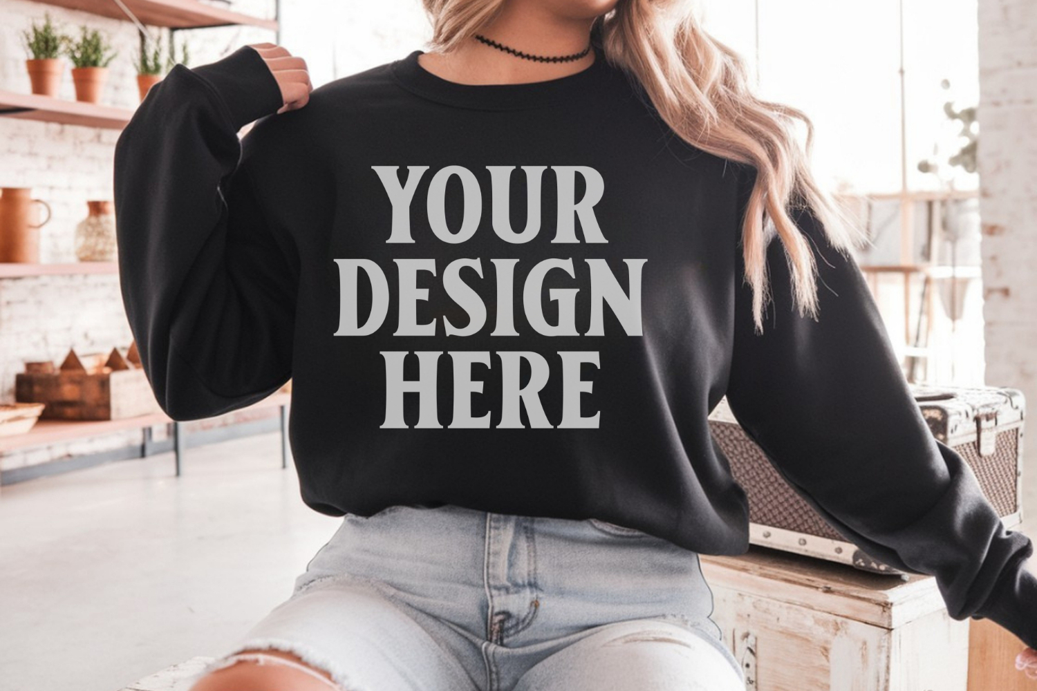 Similar Design Products to Gildan 18000 Black Mockup , Crewneck Sweatshirt Boho Mock-up