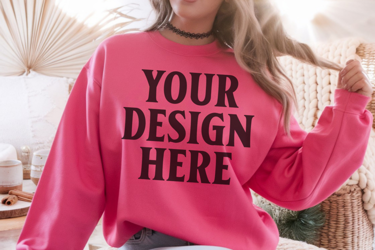 Gildan 18000 Heliconia Mockup , Crewneck Sweatshirt Boho