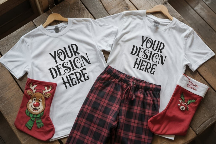 Christmas Family Matching Group Flat Lay Mockup, Cozy Holiday T-Shirt Mockup