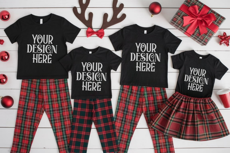 Christmas Family Matching Group Flat Lay T-Shirt Mockups