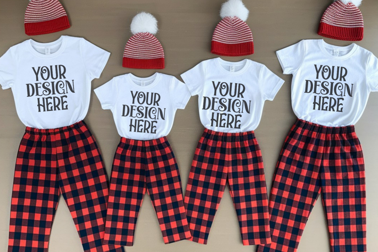 Christmas Family Matching Group Flat Lay T-Shirt Mockups