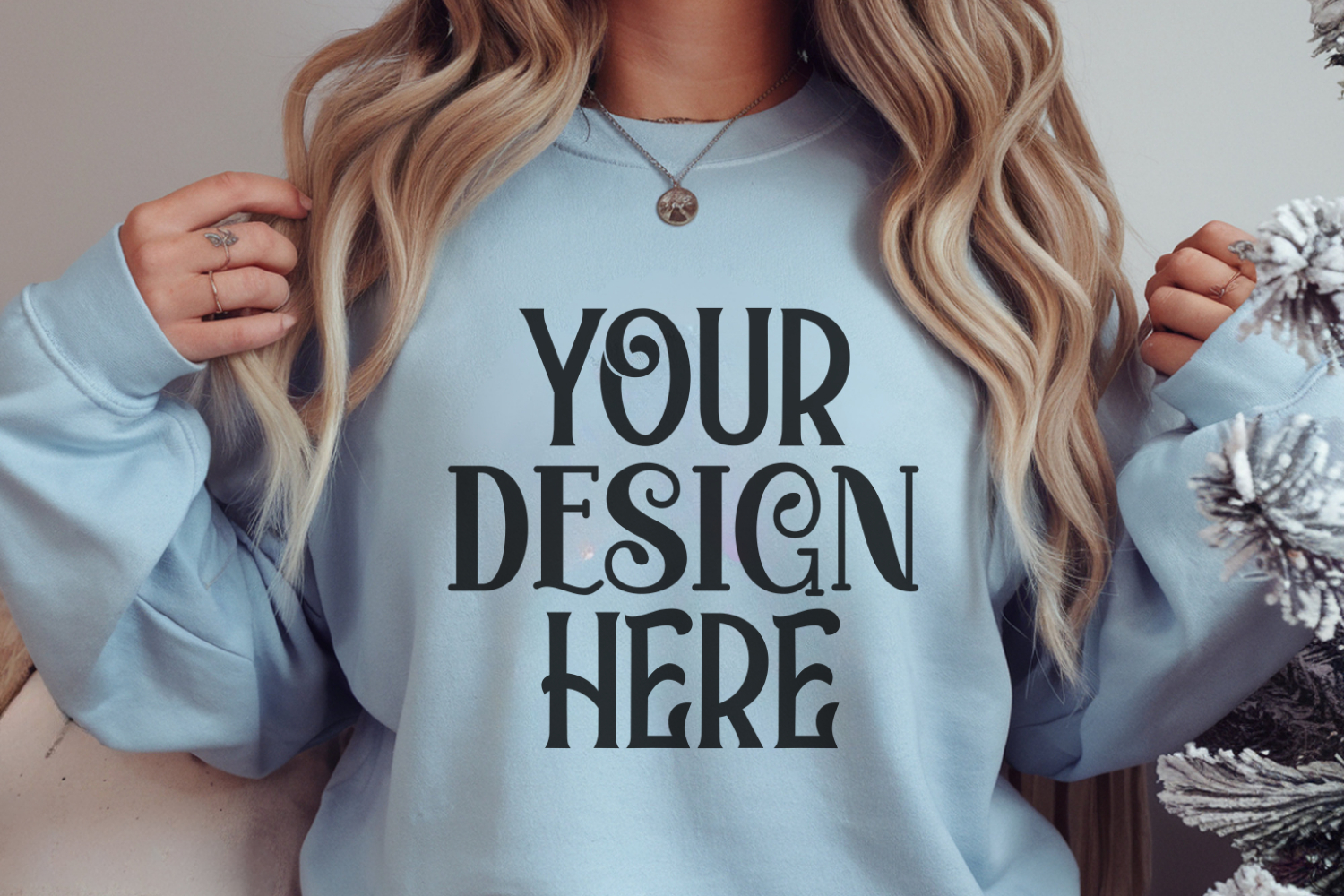 Christmas Gildan 18000 Light Blue Crewneck Sweatshirt Mockup example image 1