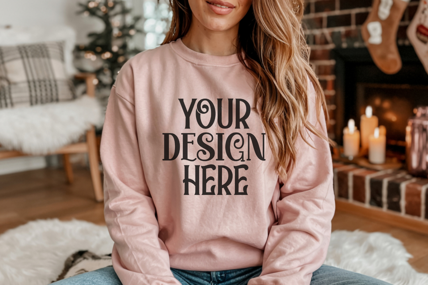 Christmas Gildan 18000 Light Pink Sweatshirt Mockups