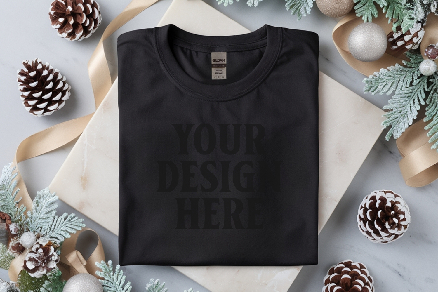Gildan 5000 Black Folded Christmas Mockup, G5000 mockup