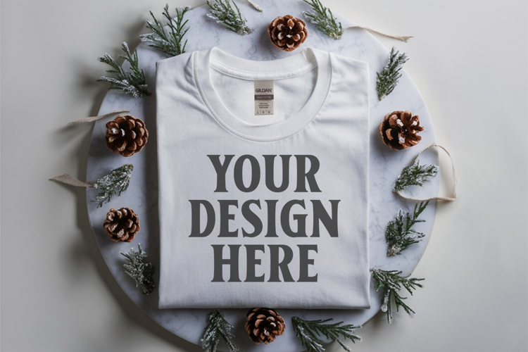 Gildan 5000 white Folded Christmas Mockup, G5000 mockup