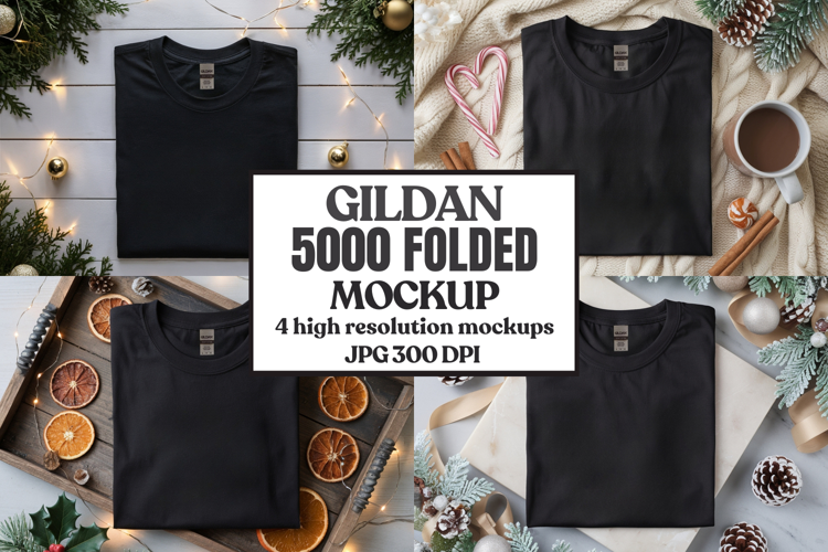 Gildan 5000 Folded Christmas Mockup, G5000 mockup