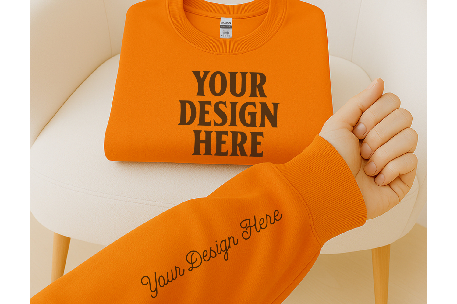 Similar Design Products to Gildan 180000 Orange Sweatshirt Sleeve Mockups