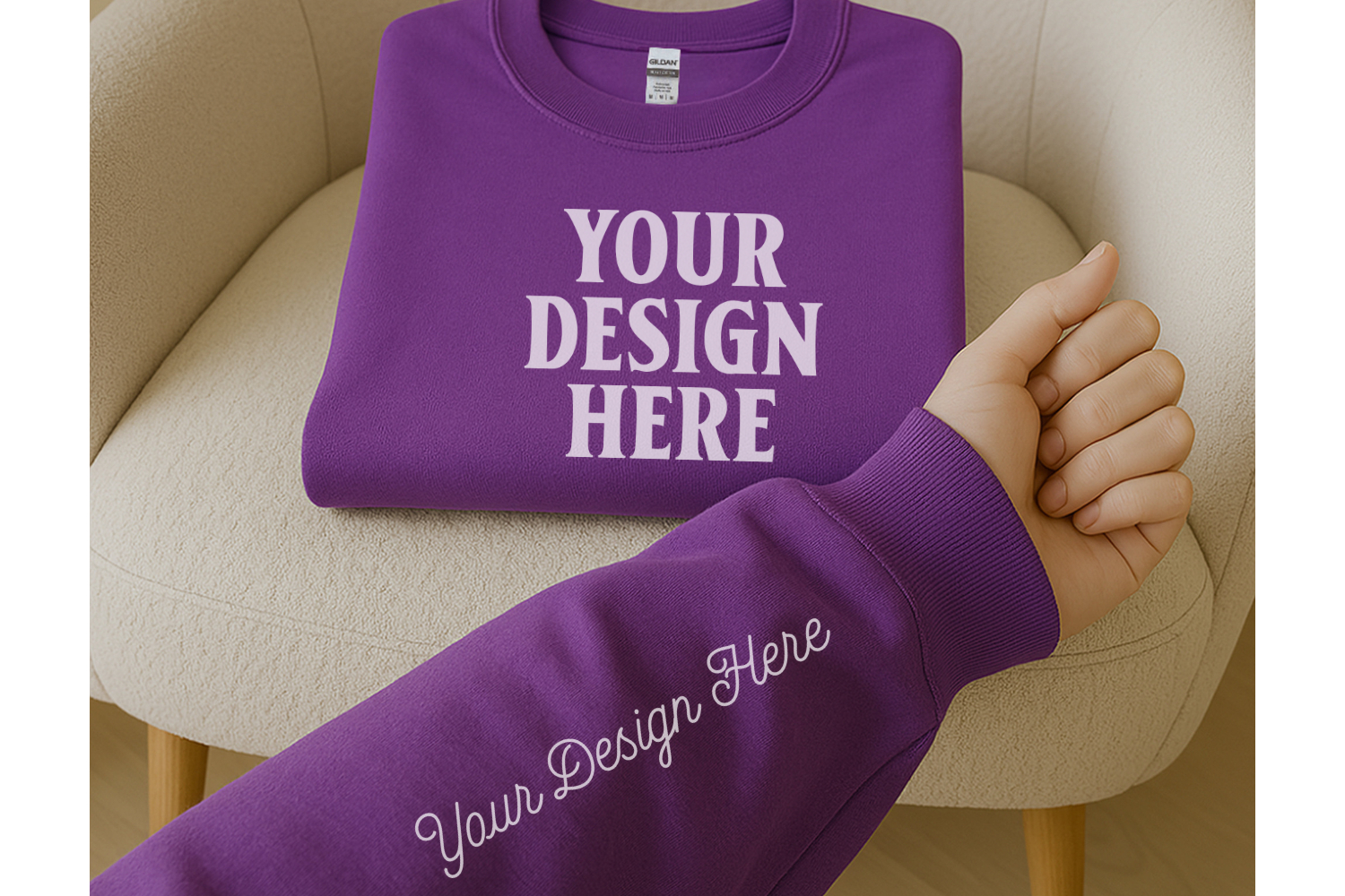 Gildan 180000 Purple Sweatshirt Sleeve Mockups example image 1
