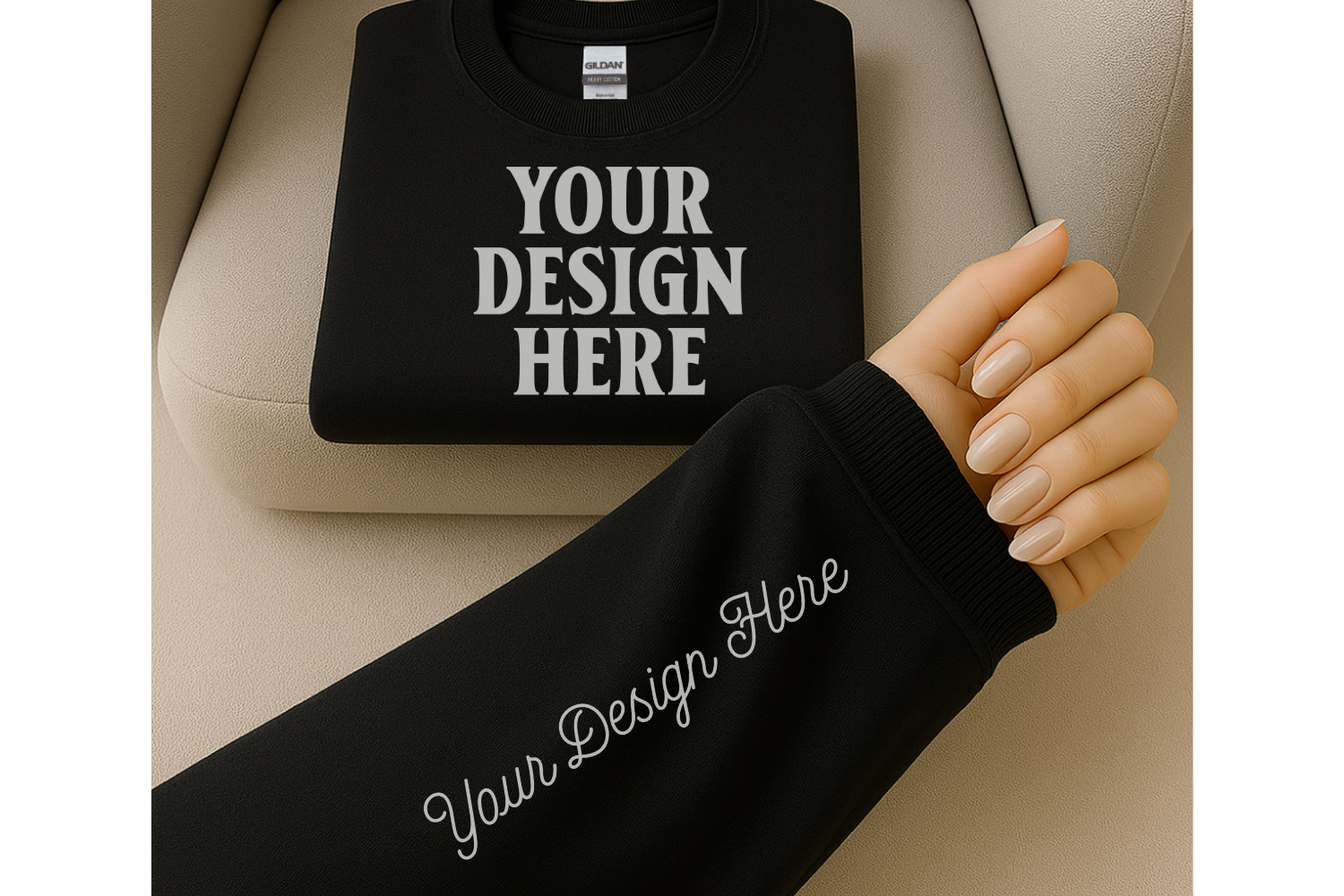 Gildan 18000 Black Sleeve Sweatshirt Mockup | Cozy Crewneck