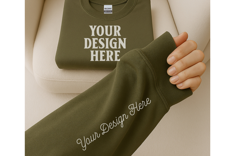 Similar Design Products to Gildan 18000 Military Green Sleeve Sweatshirt Mockup