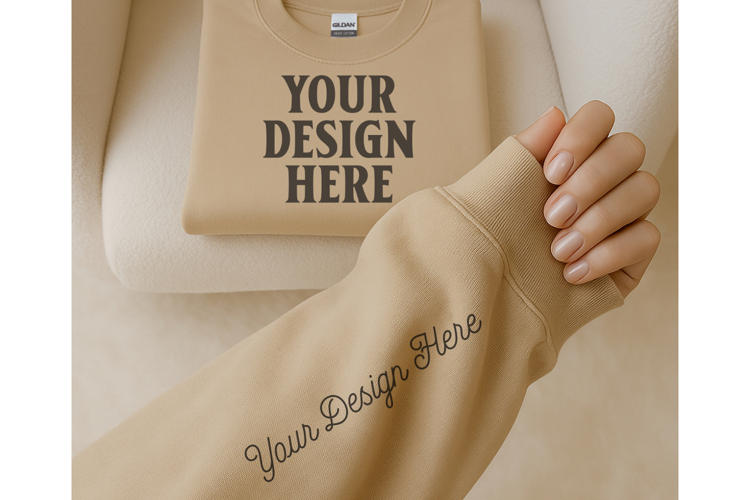 Gildan 18000 Tan Sleeve Sweatshirt Mockup example image 1