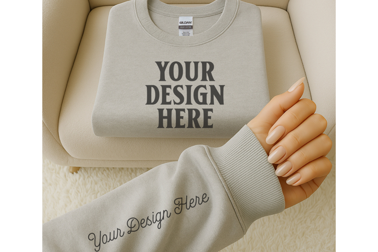 Gildan 18000 Ash Sleeve Sweatshirt Mockup | Cozy Crewneck