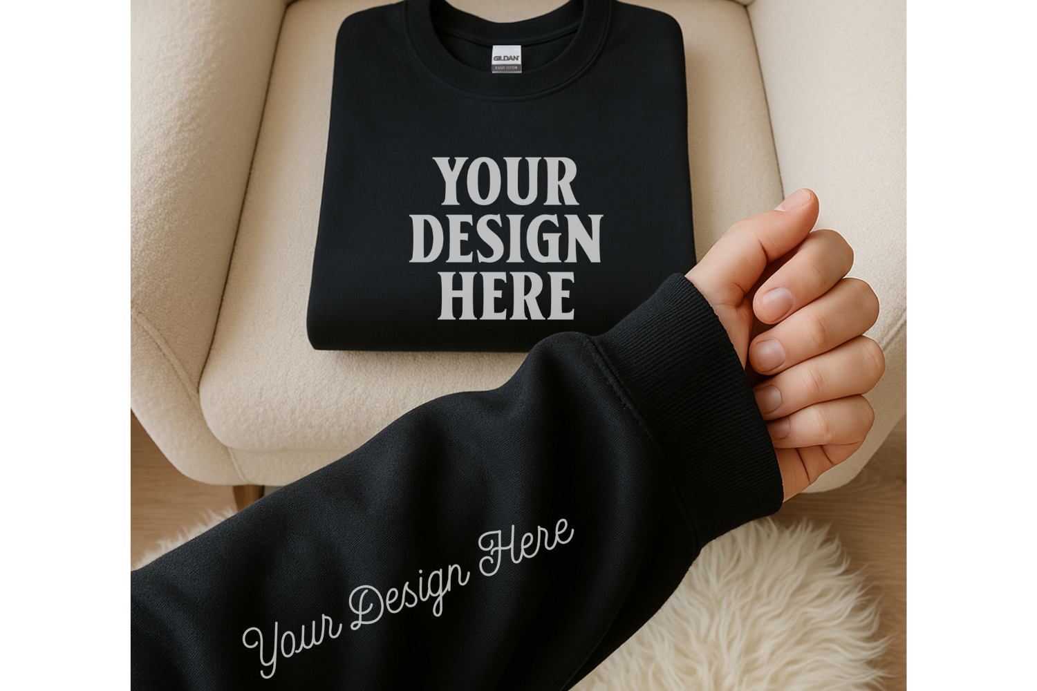 Gildan 18000 Black Sleeve Sweatshirt Mockup | Cozy Crewneck