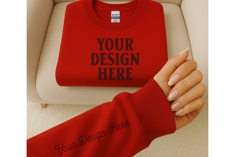 Gildan 18000 Red Sleeve Sweatshirt Mockup