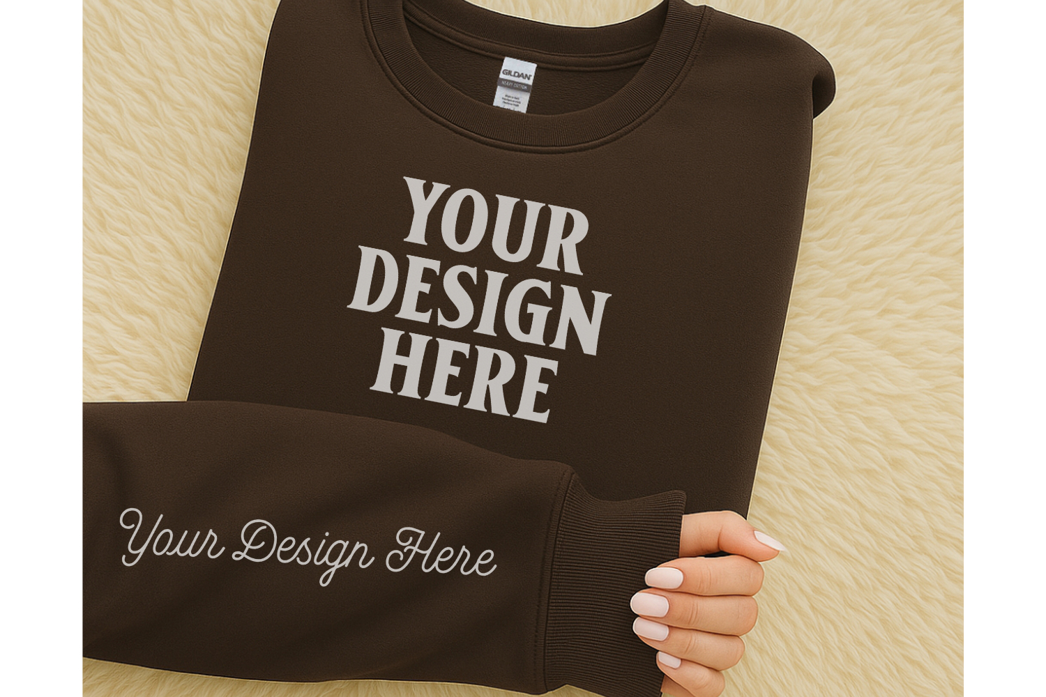 Similar Design Products to Gildan 18000 Chocolate Sleeve Sweatshirt Mockup